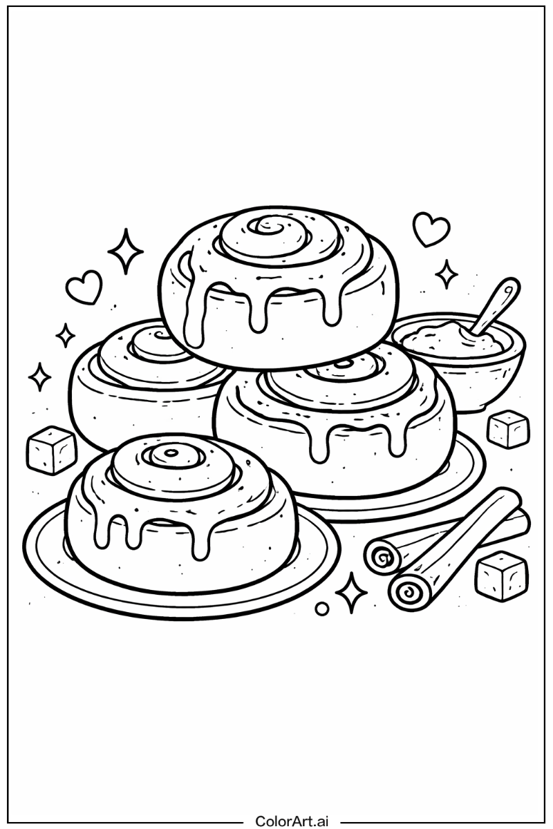 Cinnamon roll coloring pages are designed for various age groups, typically ranging from preschoolers (3-5 years) to adults. We offer different complexity levels to match different skill levels.