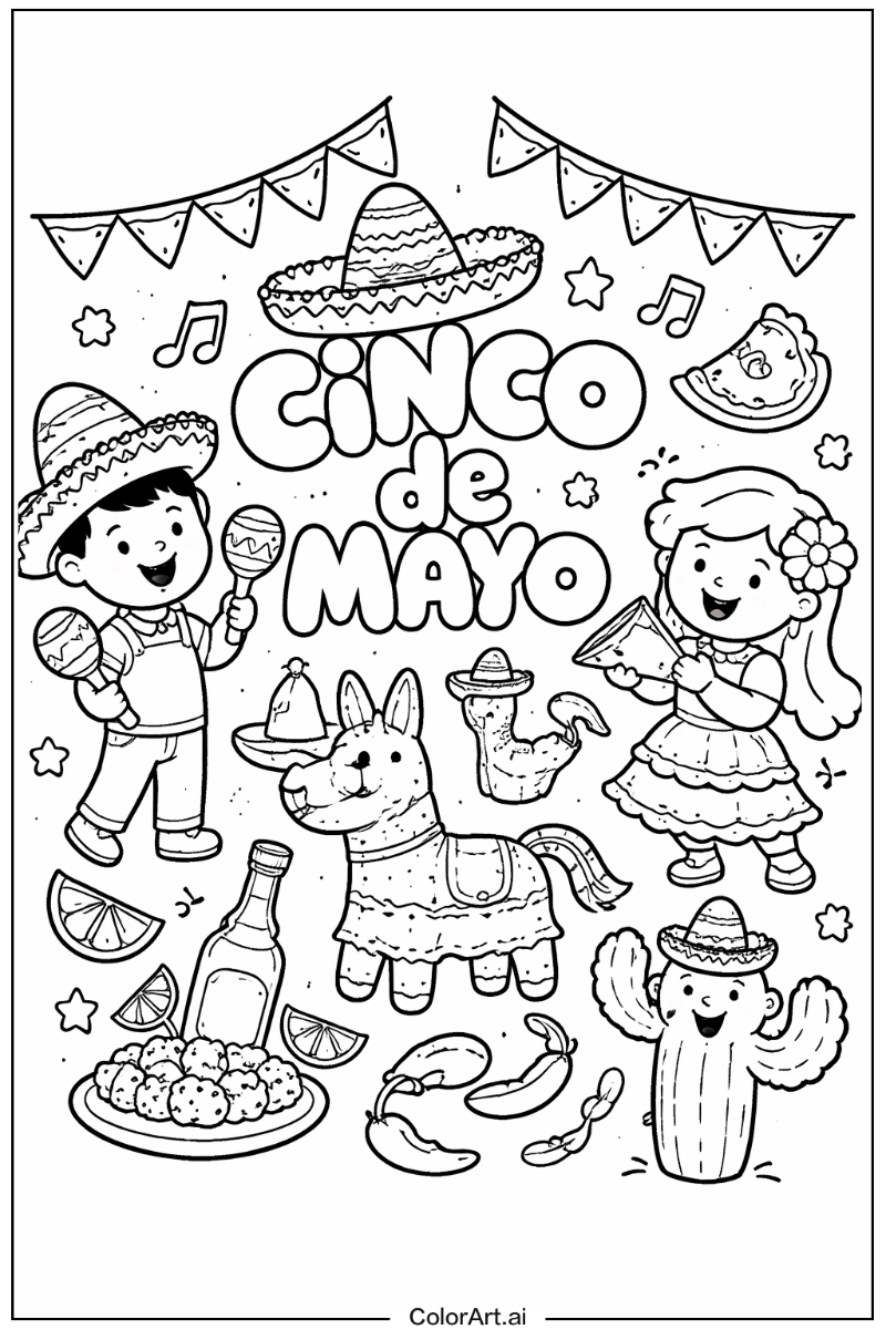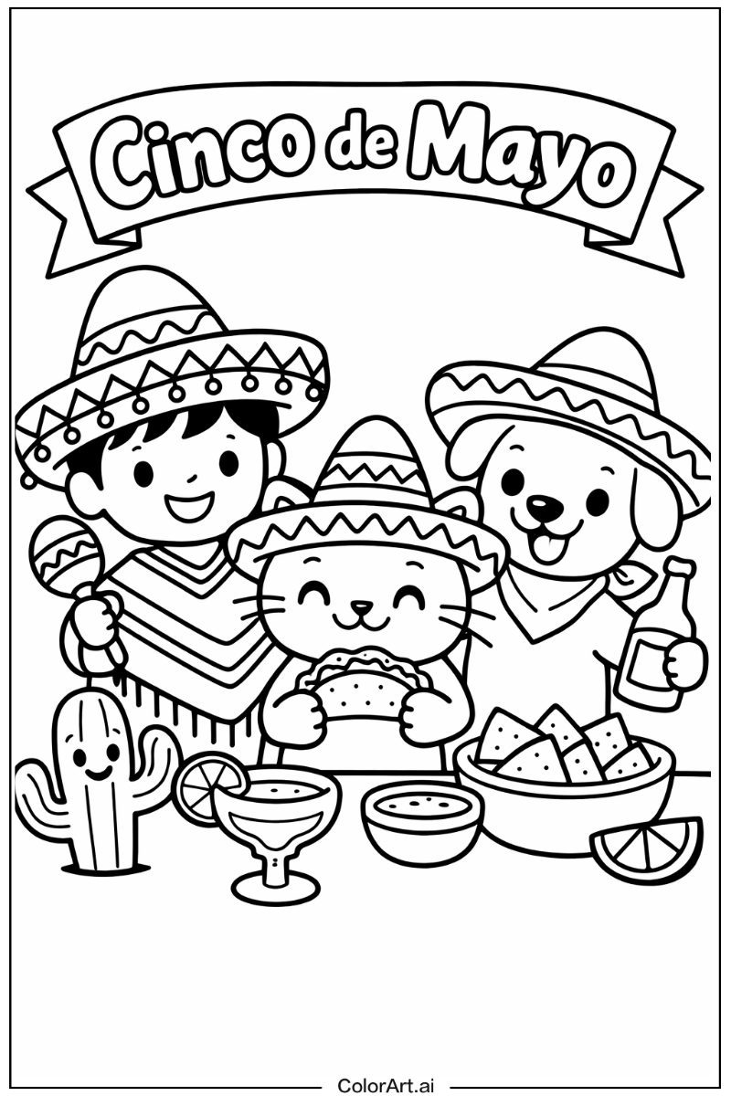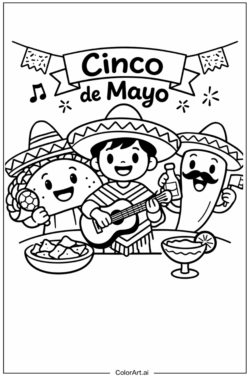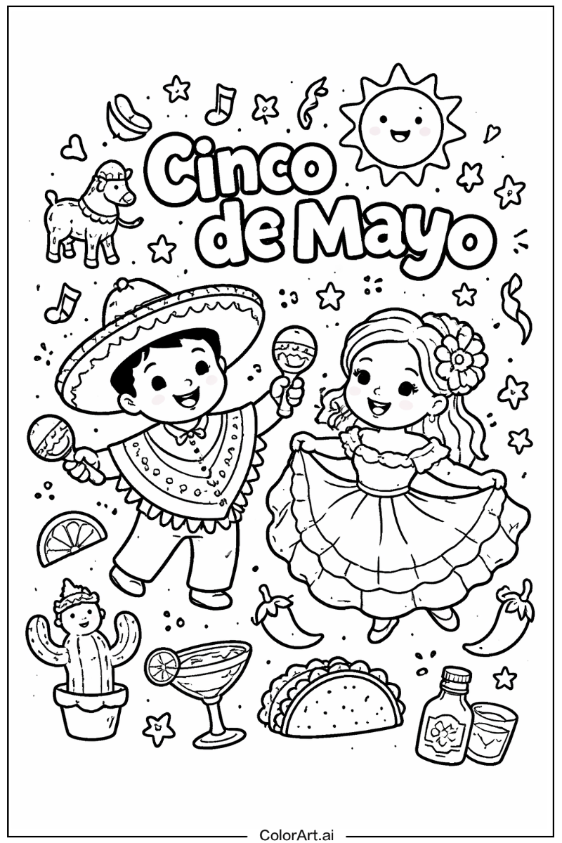 Cinco de mayo coloring pages are designed for various age groups, typically ranging from preschoolers (3-5 years) to adults. We offer different complexity levels to match different skill levels, ensuring that everyone can participate and enjoy.