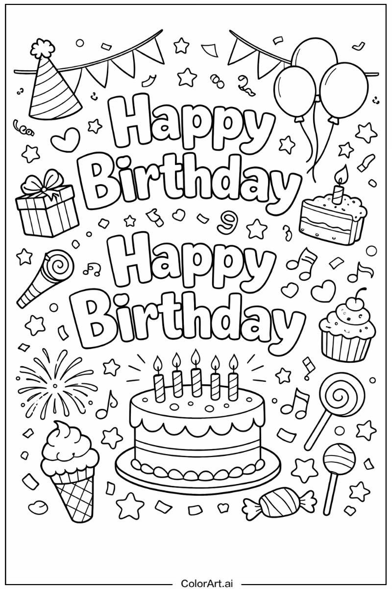 47枚の無料ハッピーバースデー塗り絵ページ