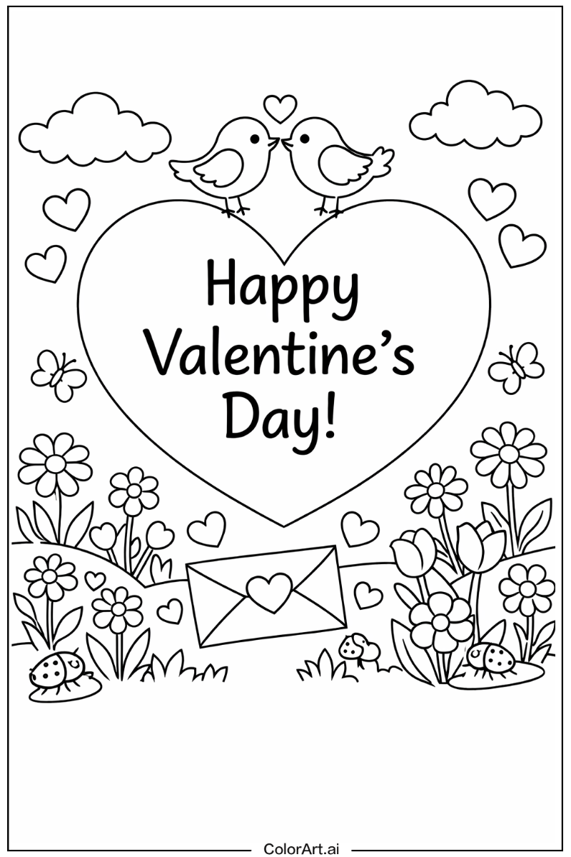 33枚の無料バレンタインデー塗り絵ページ