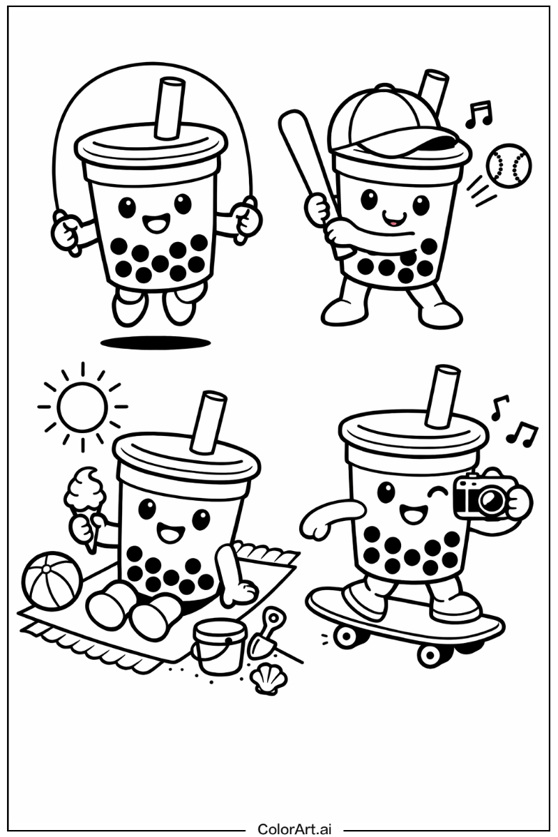 免費可列印的波霸奶茶塗色頁下載